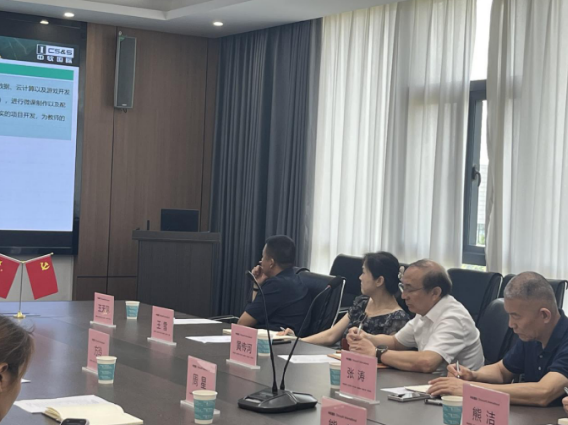 在考察的最后环节,双方在会议室举行了武汉晴川学院-中软国际实习实训基地建设情况汇报会。会上,基地负责人周星总经理详细汇报了基地的建设历程、取得的成果、存在的问题以及未来的发展规划。