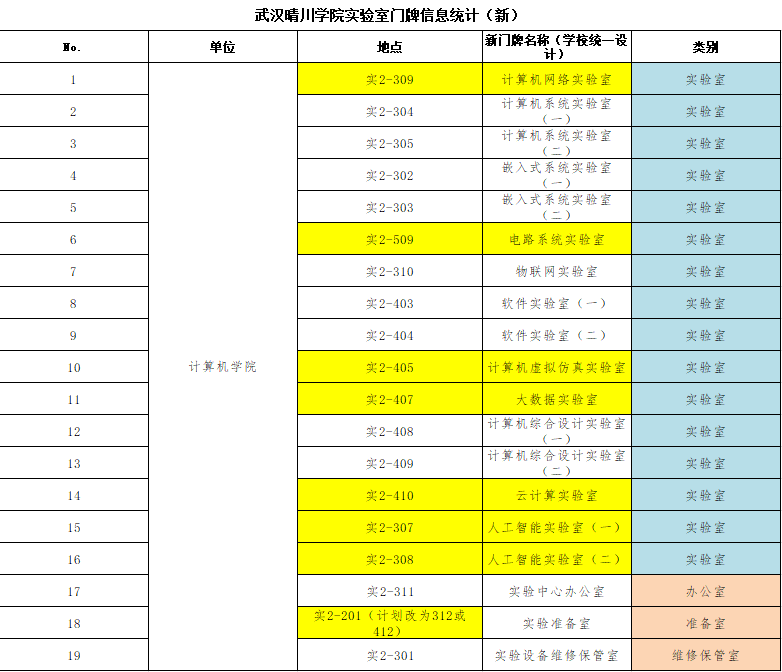开云官方端网站登录入口-武汉晴川学院实验室门牌信息统计