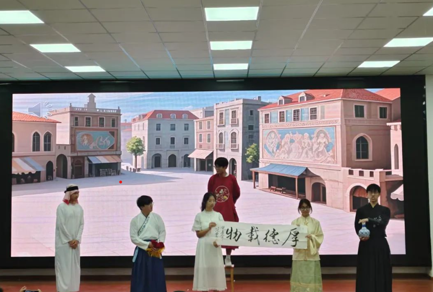 在这次大赛中,我们看到了同学们如何将历史与现代、传统与创新完美融合。他们通过情景剧、歌舞、说书等多种形式,生动再现了明朝时期中外文化交流的盛况。从远渡重洋的使者到带来异域文化的外国客人,每一个故事都充满了创意和深度,展现了同学们对历史的深刻理解和对文化的热爱。