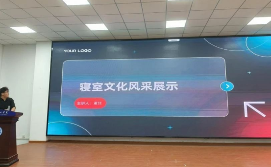 第七位是8栋-640寝室的代表,以 PPT 的形式,向大家介绍了他们充满文化色彩的寝室。在这里,室友们共同学习、相互帮助,寝室生活既充实又愉快,没有浮躁之气,有的只是对知识的追求和对梦想的执着。他们正携手打造属于自己的知识乐园。