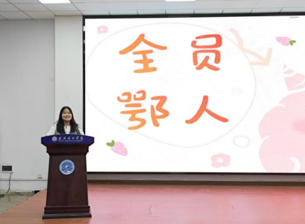 第一位登场的是 1 栋 - 607 寝室的代表。他以幽默风趣的语言,生动地向大家介绍了寝室的日常生活与行为习惯,让在场观众仿佛身临其境,真切感受到了该寝室轻松愉快的氛围。这个由四位来自湖北各地的朋友组成的小家庭,始终携手并进、团结一心,共同迎接生活的挑战,分享成长的喜悦,展现出了深厚的室友情谊。