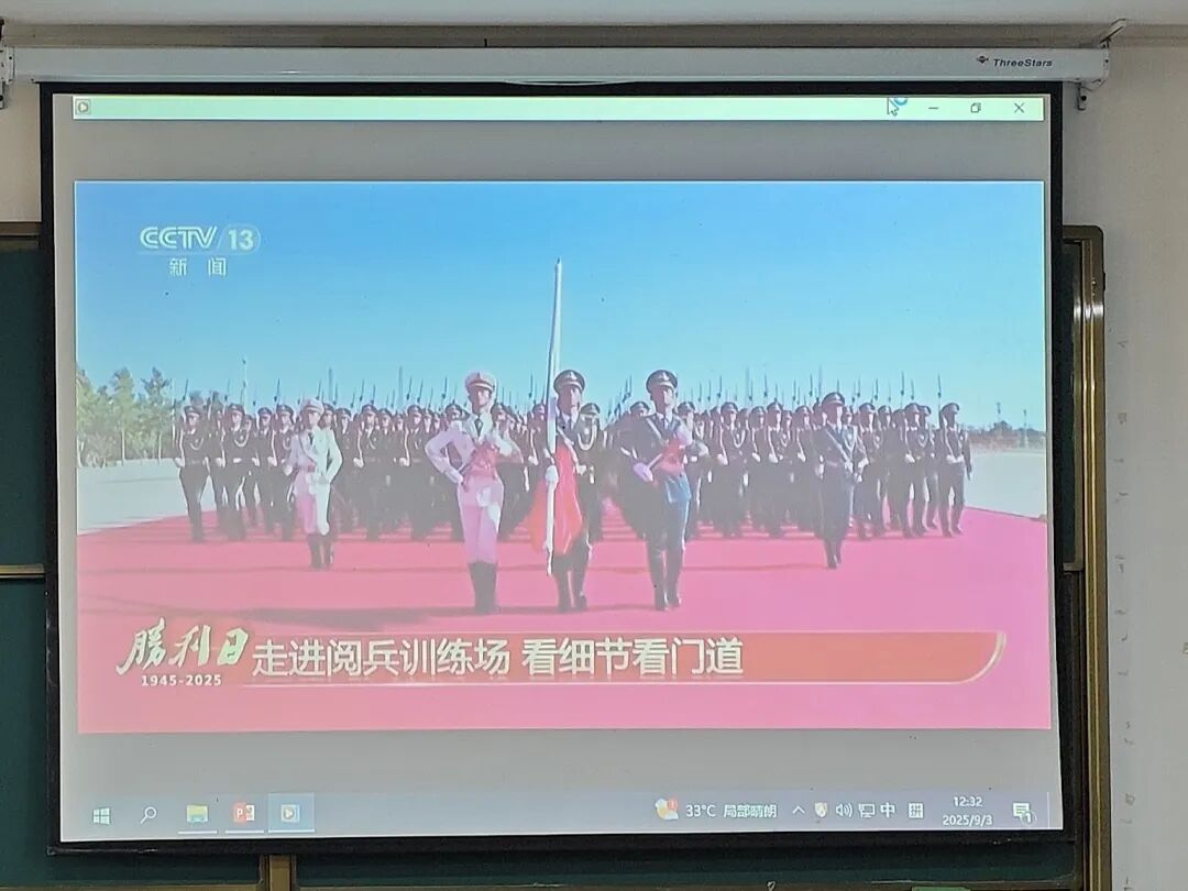 大会第一项,观看纪念中国人民抗日战争暨世界反法西斯战争胜利80周年大会相关视频。同学们通过视频认真学习,大会也在此正式拉开序幕。
