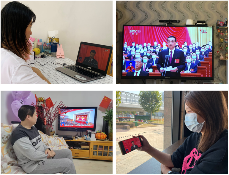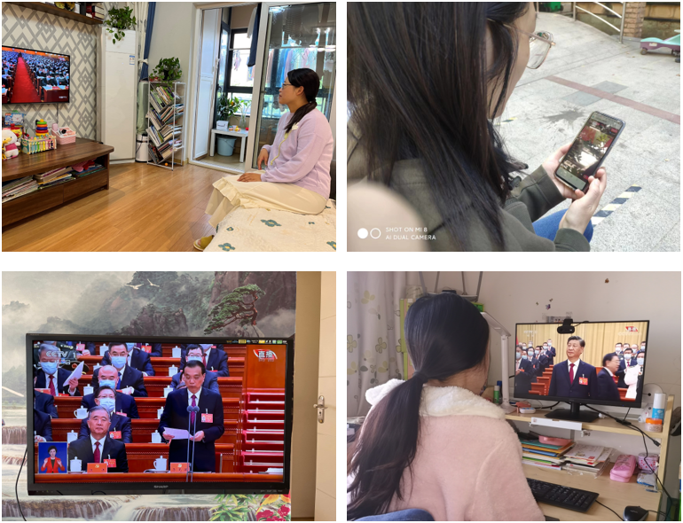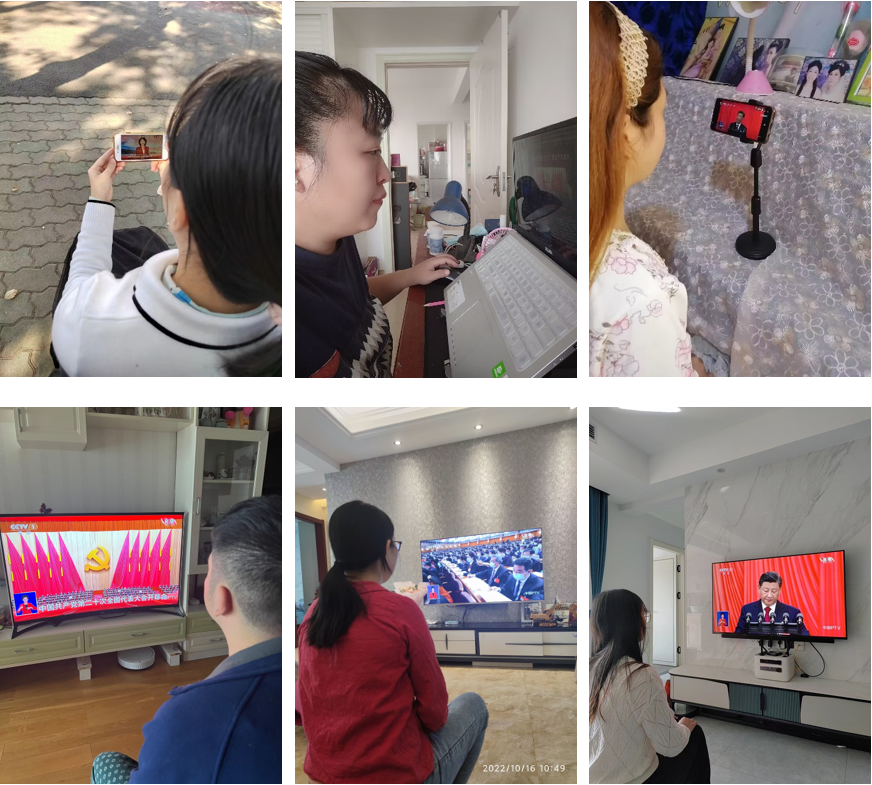 老师们在家通过电视、手机等方式观看开幕盛况,报告中讲述的新思想、新观点引起了大家的强烈共鸣,观看过程中,他们心神专注,仿佛置身于大会现场,激动与自豪之情溢于言表。