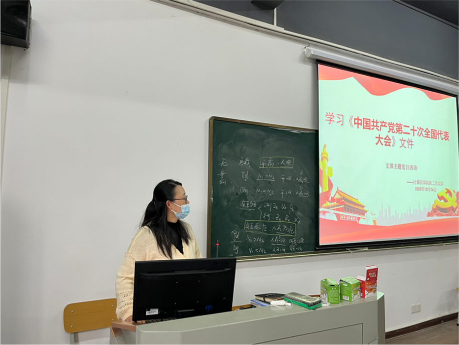 在金秋送爽、丹桂飘香的季节,我们在收获中遇见最美的秋天,也迎来了中国共产党第二十次全国代表大会。为进一步学习中国共产党第二十次全国代表大会上的报告精神,10月26日,开云官方端网站登录入口教工党支部在实验楼2-304开展主题党日活动——学习《中国共产党第二十次全国代表大会》文件。教工党支部全体党员教师参与学习,由支部书记叶丽萍主持会议。