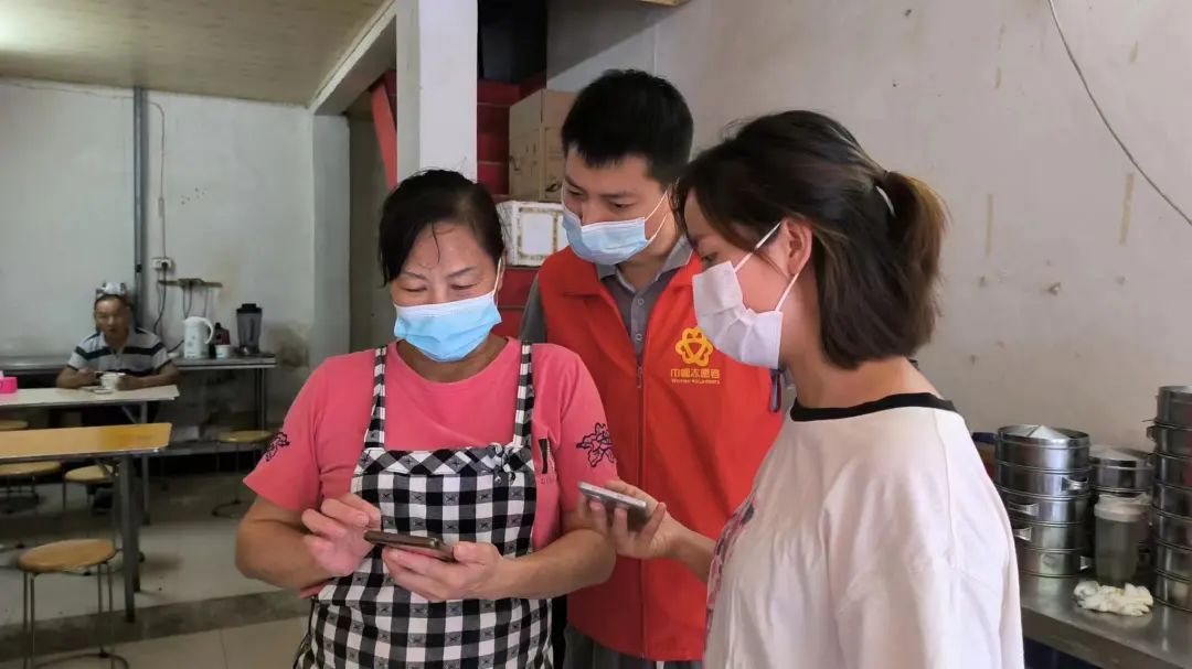 他们先是来到核酸采集点,协助医护人员进行核酸检测,引导居民排队并提前出示健康码,加快了核酸采集的效率。云老师还帮助年迈的老人,耐心的打开健康码进行扫码。余老师则帮助老年人登记信息等。