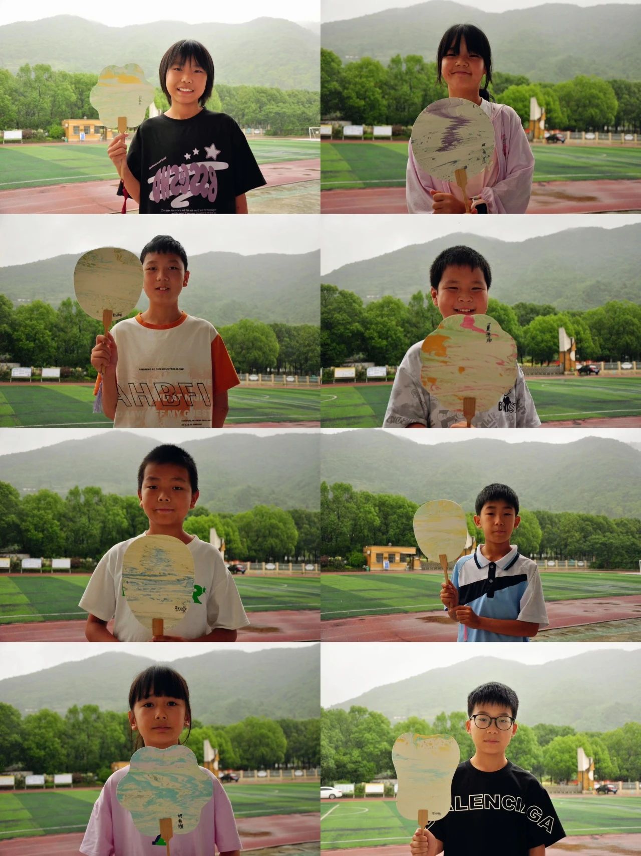 经过几个小时的精心制作,同学们终于完成了自己独一无二的漆扇作品,并在扇面上郑重地写下自己的名字,与心爱的扇子一同合影留念。虽然每件作品风格迥异,但都散发着独特的韵味与个性魅力。看到自己的劳动成果,无论是志愿者还是同学们,都忍不住感到欣喜与自豪。