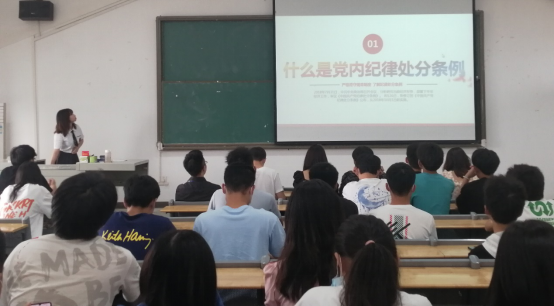 本次学习由宣传部部员文惠婷同志主持,组织部部员刘诗昭同志担任主讲人。首先,刘诗昭同志介绍了什么是党内纪律处分条例,她指出《中国共产党纪律处分条例》的制定目的是维护党的章程和其他党内法规,严肃党的纪律,纯洁党的组织。其次她就《中国共产党纪律处分条例》第七十五条做了详细的讲解,指出党内选举中拉票,助票的行为属于违反条例的内容。最后她用视频的方式对条例的内容进行解读,让大家对相关条例有更深刻的了解。