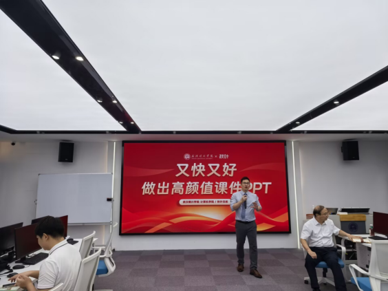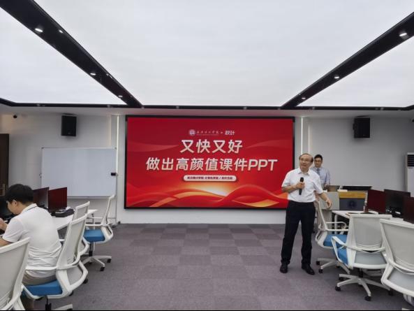 院长黄传河在总结讲话中强调:"PPT是教学思想的视觉载体,本次培训不仅是一次技术提升,更是一场教学理念的革新。"他要求全体教师以培训为契机,对标优秀案例反思自身课件的逻辑性、美观性与交互性;将AI工具与学科特色深度融合,打造具有晴川特色的数字化教学资源;建立课件定期优化机制,鼓励跨学科交流设计经验。