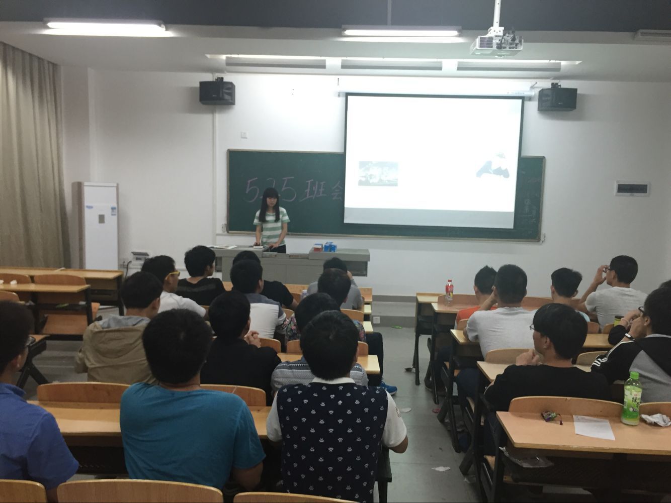 此次主题班会由班委、班团委和同学们的精心准备。首先由两个班的团支书担任此次班会的主持人,讲解相关的ppt内容。