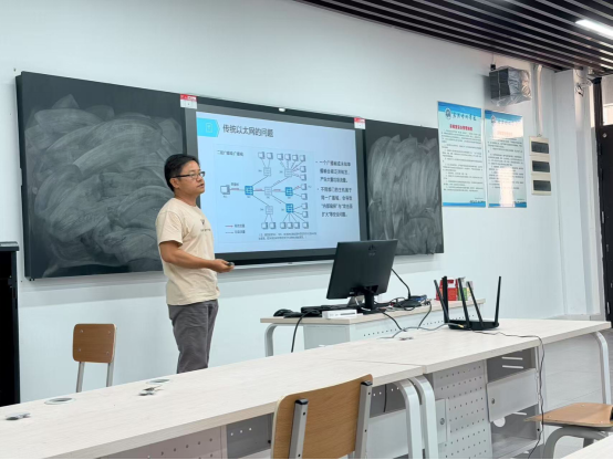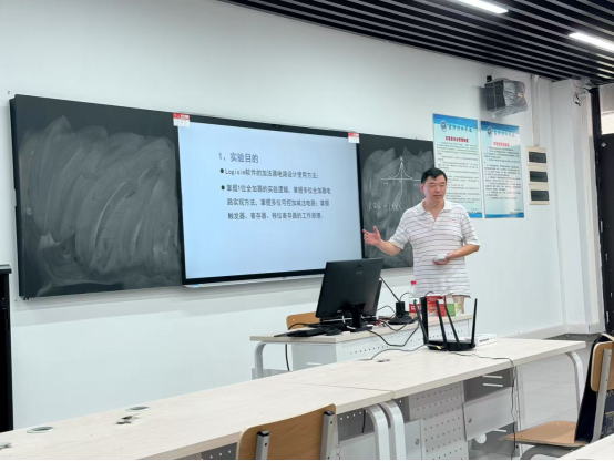 王刚老师在《计算机系统综合实训》课程中讲解“用Logisim设计4位快速进位加法器”,点评指出其存在先修课程内容重复问题,需调整授课定位,同时优化PPT字号及原理性内容占比。